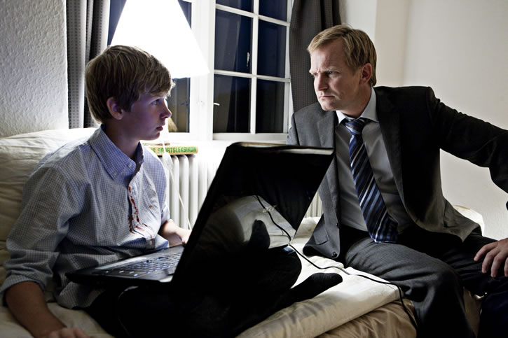 Christian lost his mother to cancer and is filled with rage, accusing his father, Claus (Ulrich Thomsen), of giving up and wanting her to die. He identifies bullies as targets he can actually fight, probably so he doesn't have to keep feeling so helpless. His meek, gentle Swedish friend Elias (Markus Rygaard) goes along for the ride chiefly because he has been included - because he wants to please his new friend and because he now belongs to a small social enclave where previously he was an outcast.