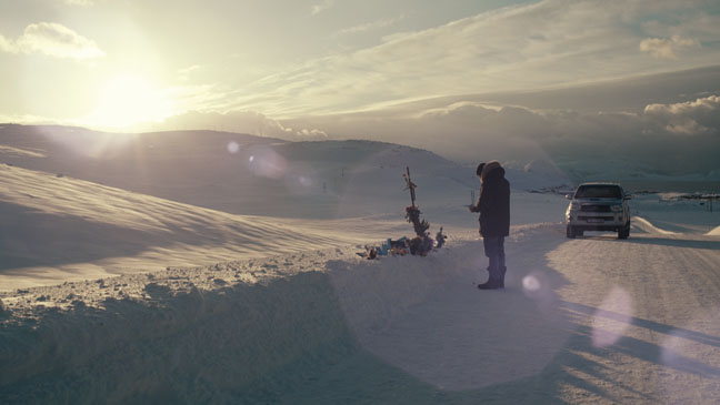 The event itself is an accident as Maria (Birgit Minichmayr) hits the girl in her car whilst driving home during the ever-sunless Polarnacht. At first she isn't sure what she's hit and it takes a short while for her to stop the car. Then she can't bear to get out and look, beyond quickly scanning her rear view mirror. After getting home, alarmed at the prospect of having killed a dog, her husband Niels (Jurgen Vogel) ventures back out to the spot looking for evidence of the accident and - after a very short, slightly half-hearted search - finds nothing. The next day news reports confirm their worst fears, but they decide to remain silent.